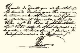 Os portugueses ansiavam pela recolonização do Brasil, e viam a permanência de Dom Pedro I como um impedimento. Após ser pressionado pelas Cortes portuguesas (espécie de parlamento) a retornar a Portugal, Pedro percebeu que o único caminho a ser tomado era declarar a independência do Brasil. Assim, em 7 de setembro de 1822, aconteceu o grito do Ipiranga, por meio do qual o regente declarou a independência do Brasil. Pedro foi, então, coroado imperador, tornando-se D. Pedro I. A partir desse momento se da o início do primeiro reinado.