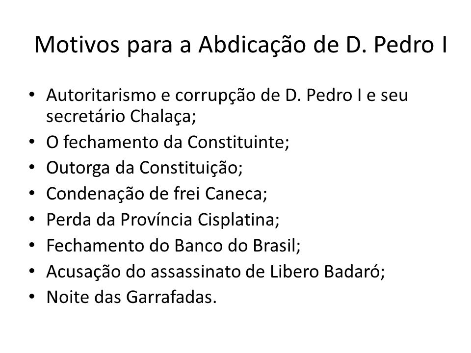 A Abdicação de D, Pedro I, ocorrida em 7 de abril de 1831, deveu-se a uma série de complicações políticas nascidas dos interesses de brasileiros e portugueses, à época.